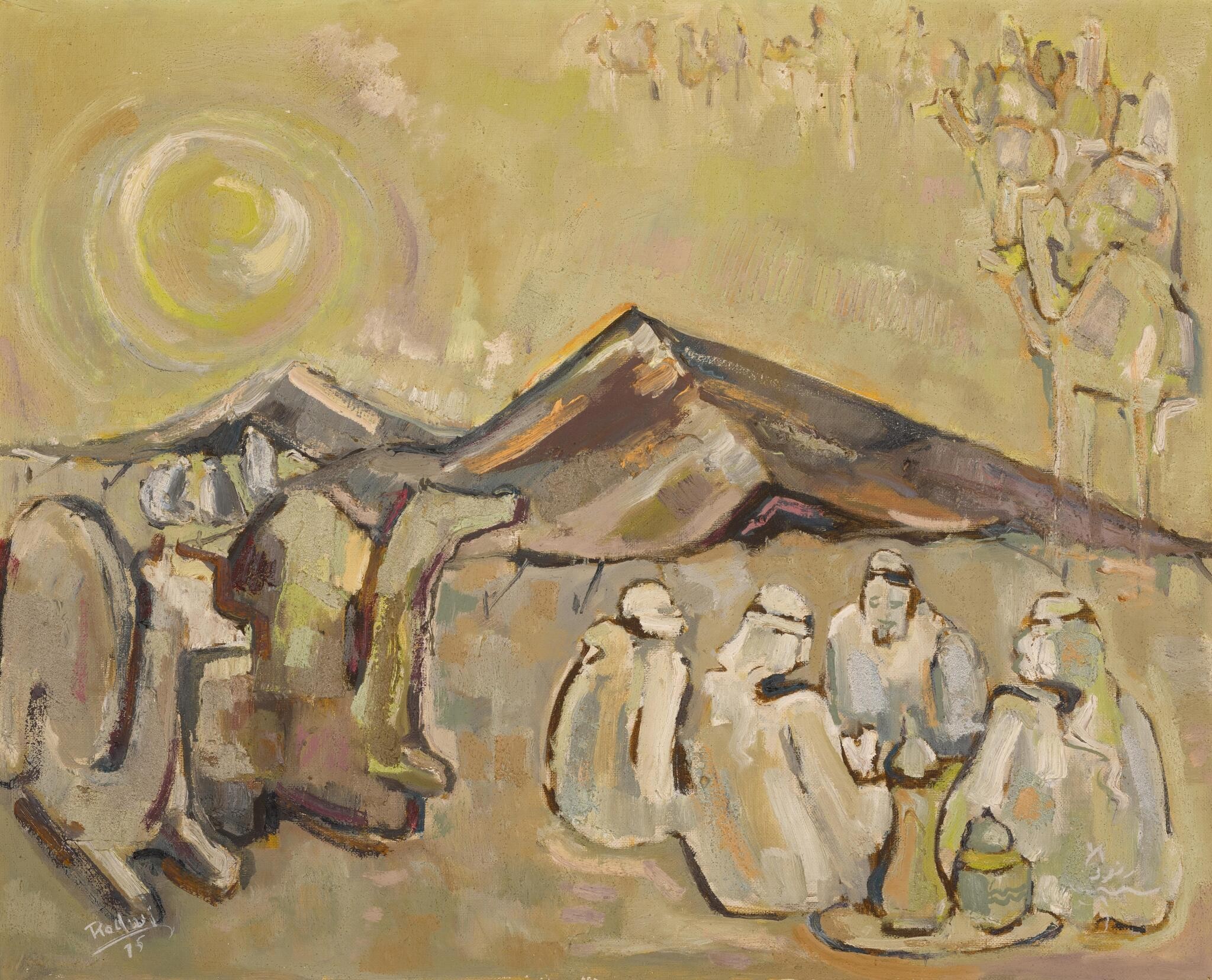 • Signed and dated "Redwi, ’75" in English (lower left); signed "Radwi" in Arabic (lower right)