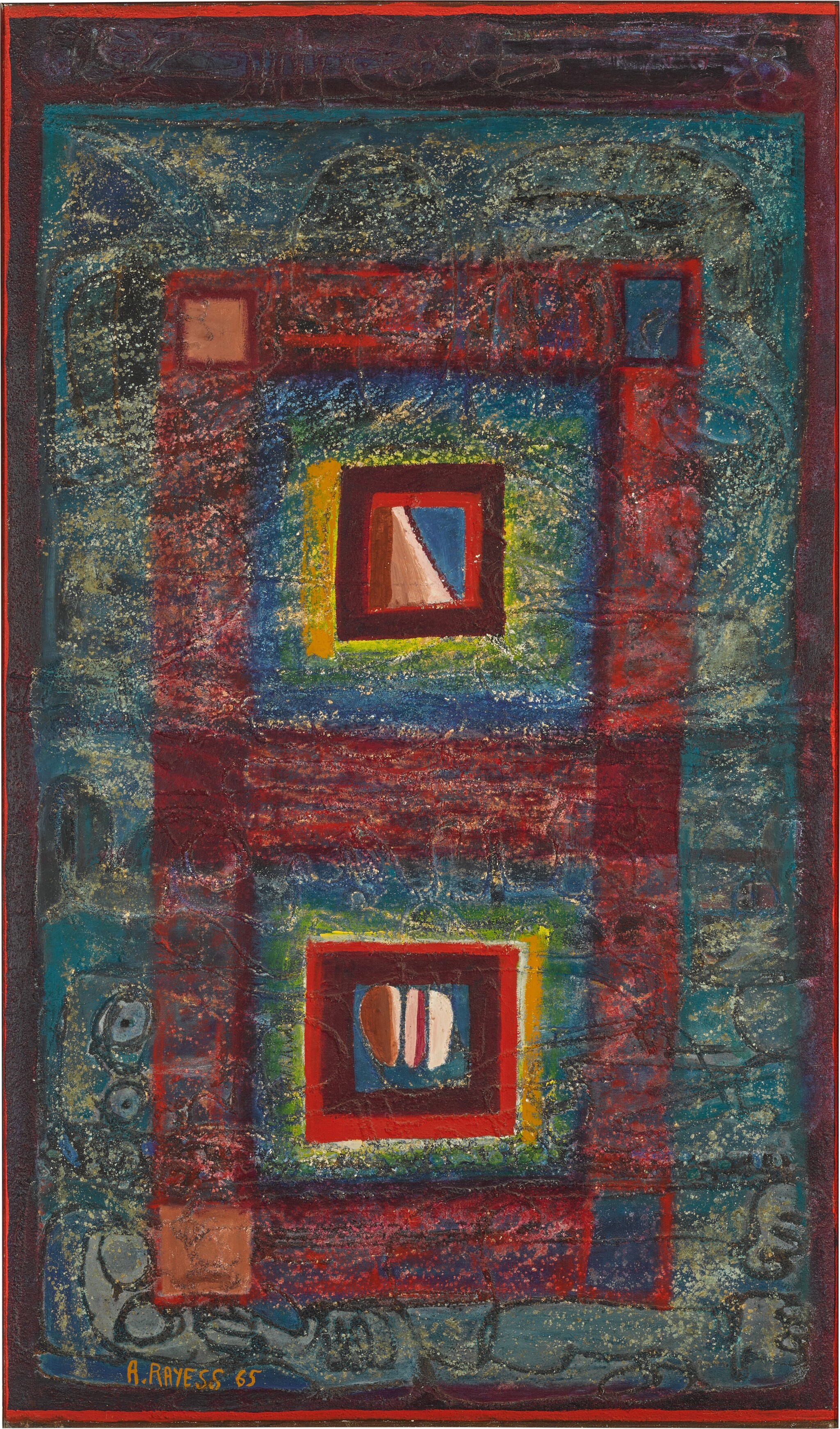 Signed and dated "A. Rayess, '65" (lower left); titled "Biombo de la Pasión Humana" (to the reverse)