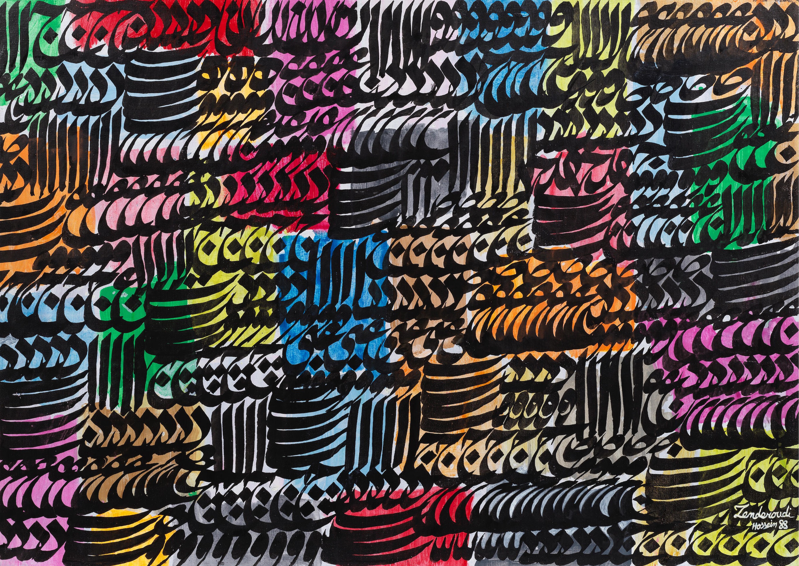 Signed "Zenderoudi Hossein" and dated "88" (lower right)