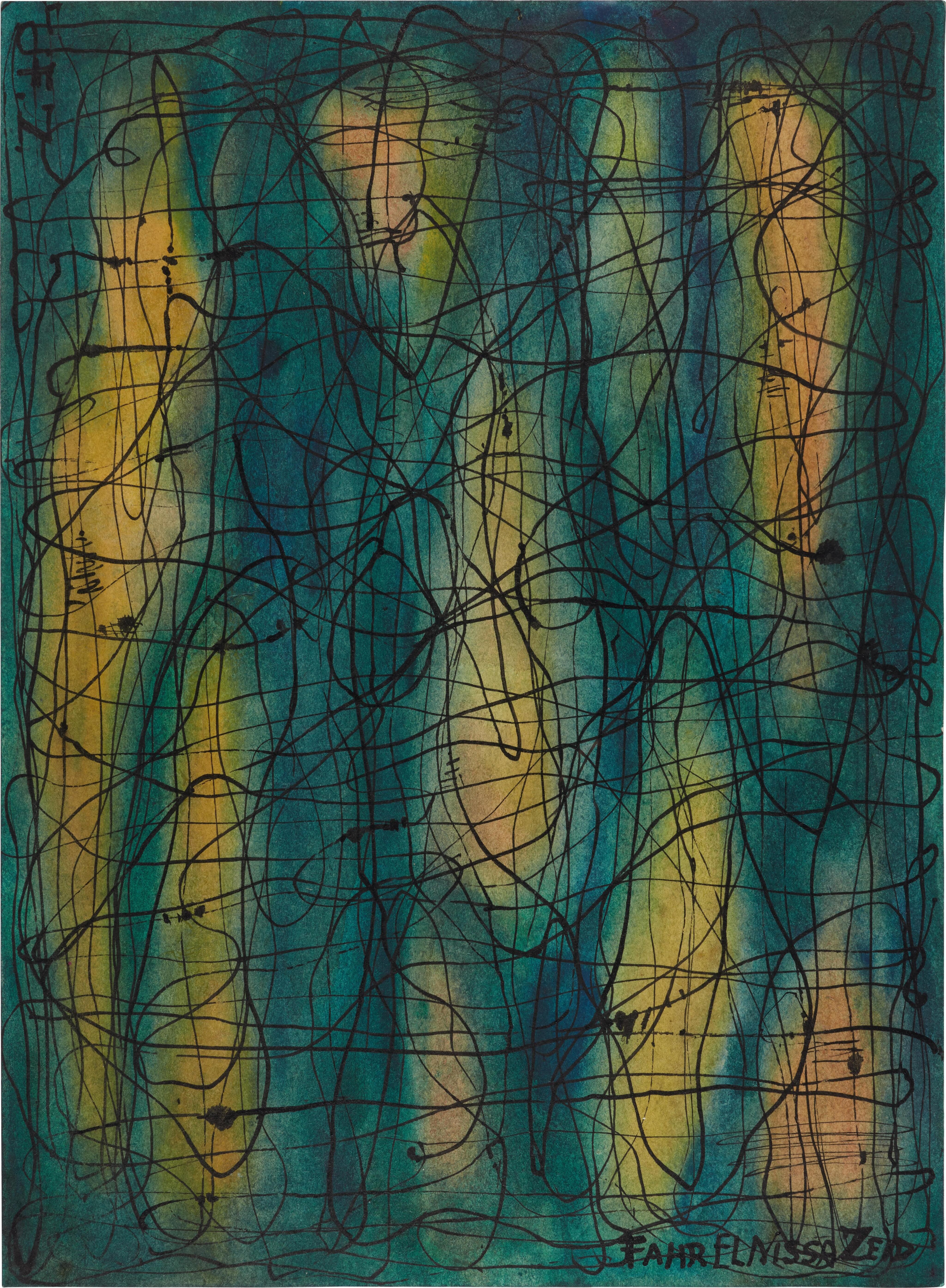 Signed "Fahr El Nissa Zeid" (lower right); signed "F.Z" (upper left)