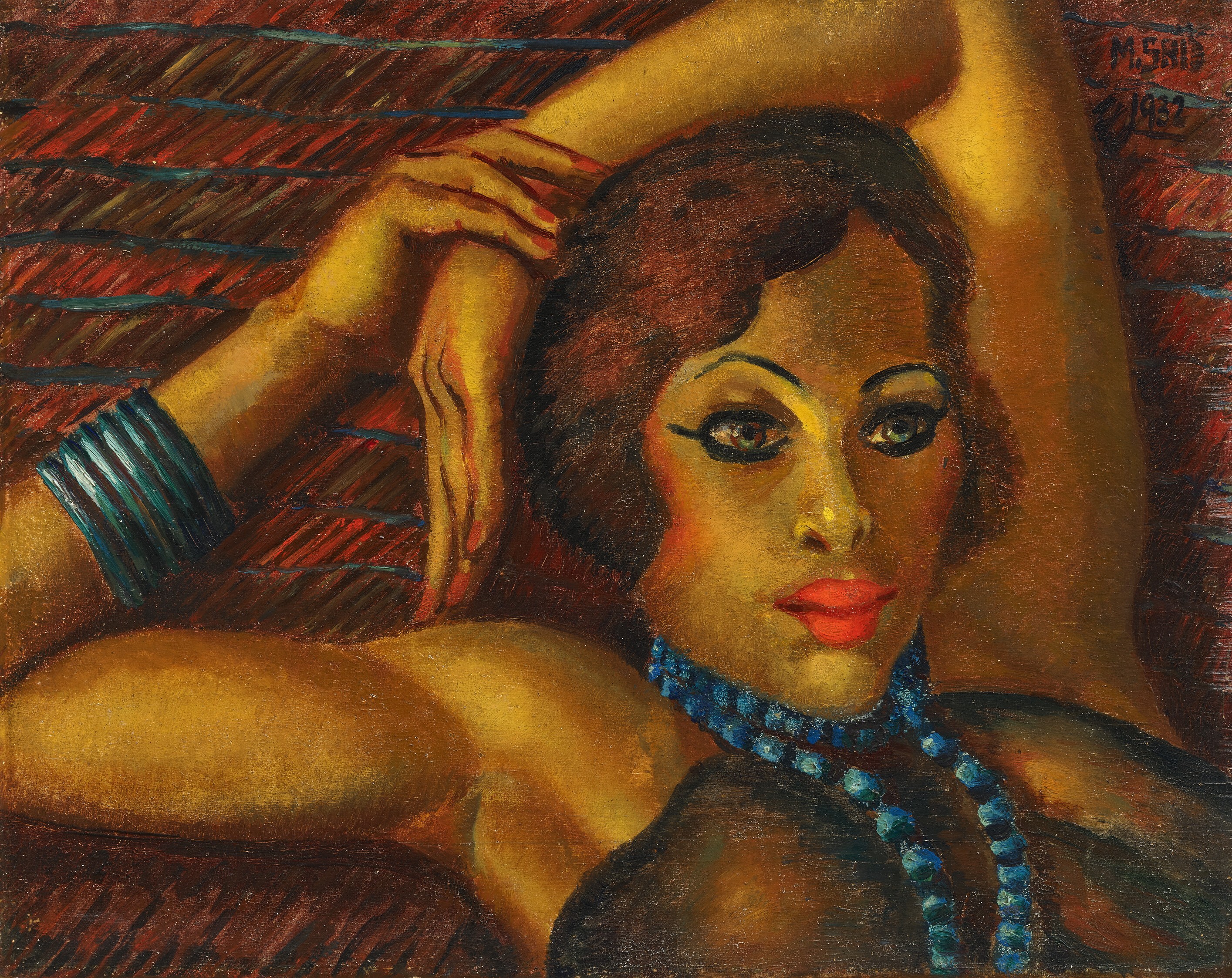 Signed and dated ‘M.SAÏD 1932’ (upper right); signed, titled and dated ‘MAHMOUD SAÏD ‘LA FILLE AUX YEUX VERTS’ 1931 (Réplique) 1932’ (on the reverse)