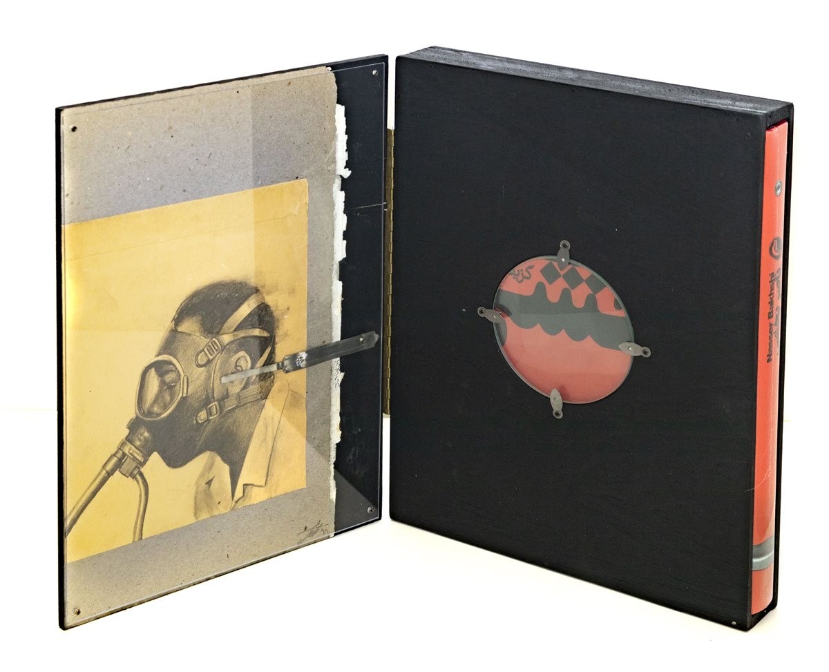 Black box book in an artist-made box containing a unique artwork
