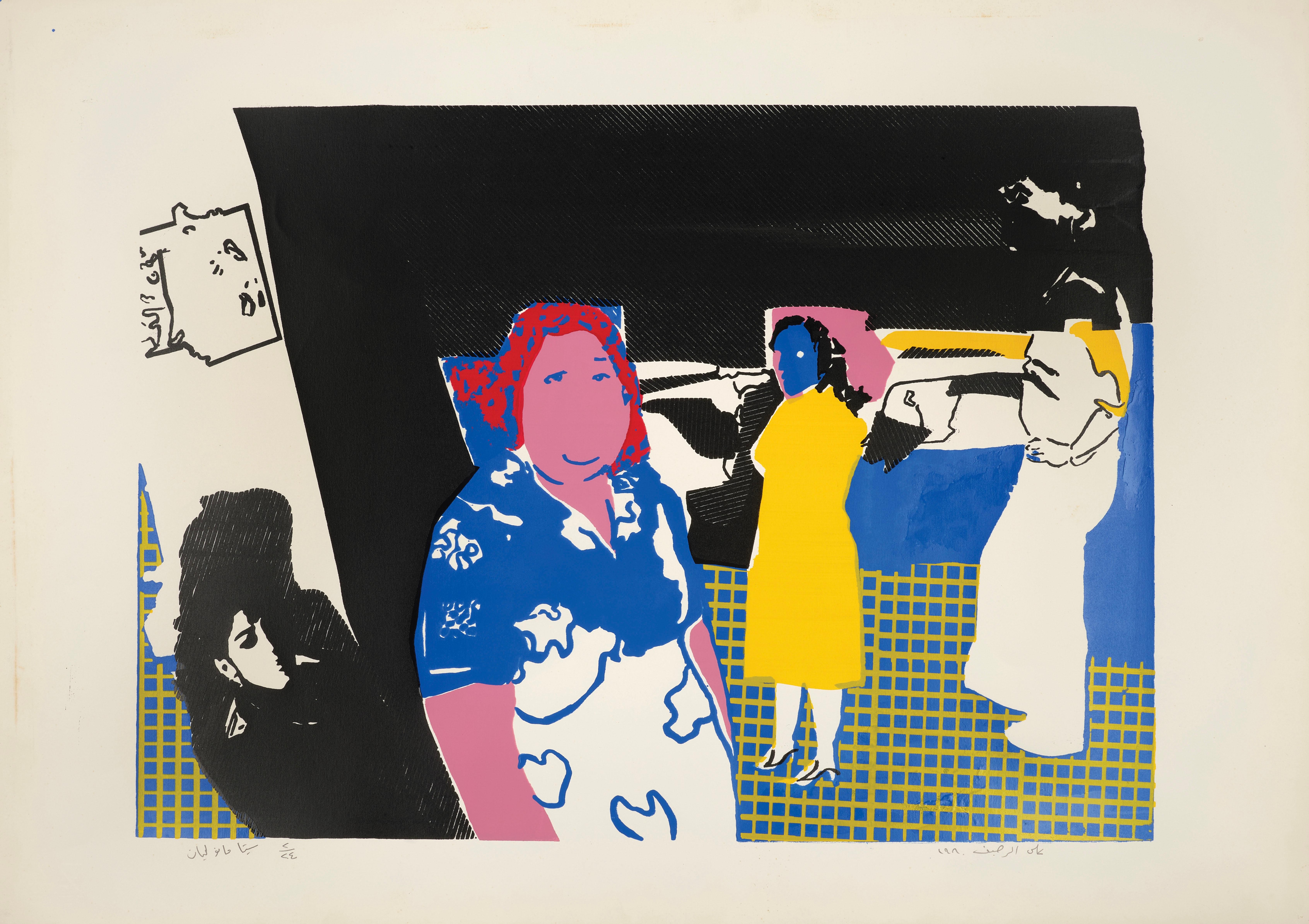 Titled and dated in Arabic "Sur le trottoir 1980" (lower right)