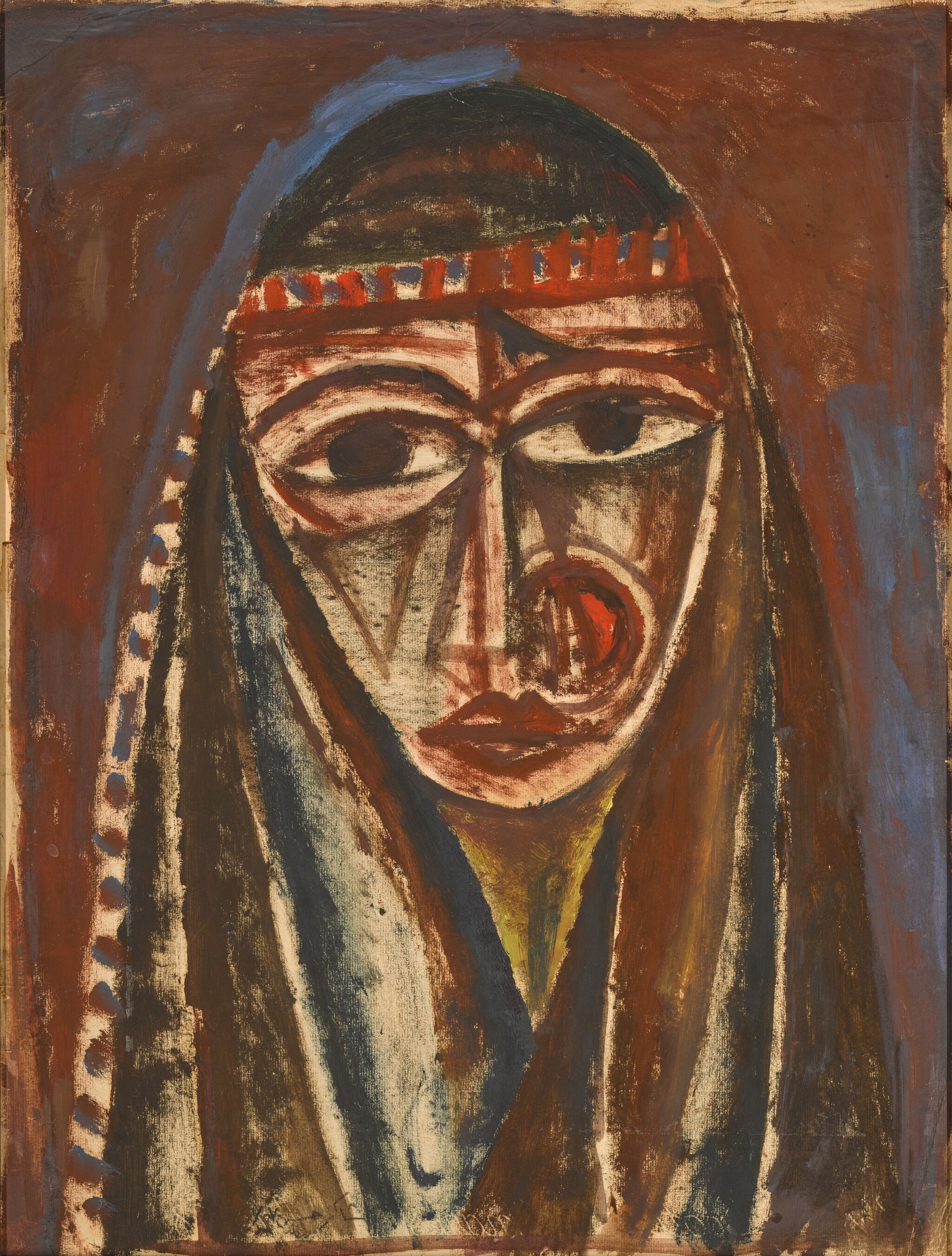Signed and dated "Shakir Hassan, 1957" in Arabic (lower left)
