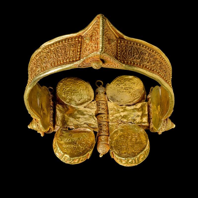 Few pieces of jewellery of such quality survive from Medieval Central Asia. The two closest comparables are now in the Metropolitan Museum of Art in New York, inv. no. 57.88a-c and in the Freer Gallery in Washington, inv. no.F1958.6.