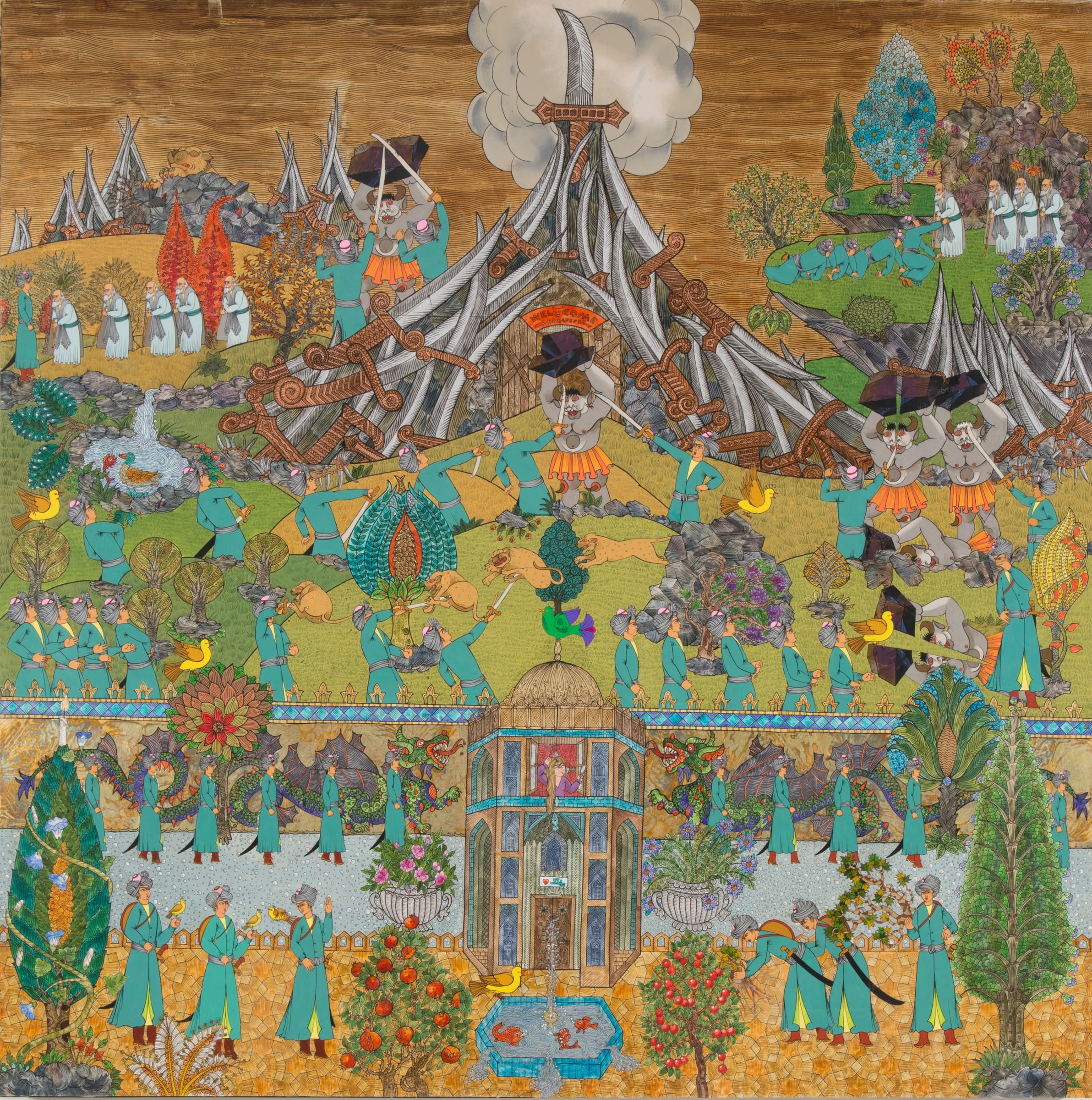 جوهر، اکریلیک و سلولوییدِ انیمیشن روی تخته چوبی