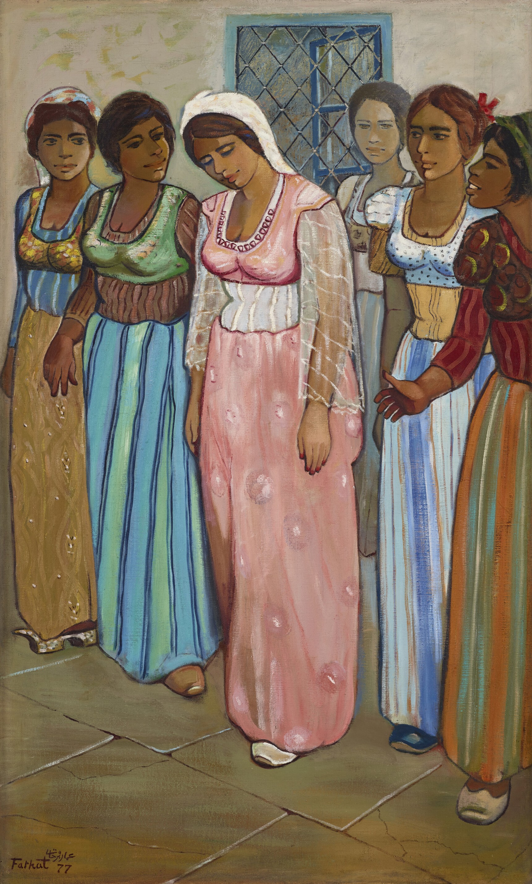 امضاشده به عربی، امضاشده و تاریخخورده «Farhat ۷۷» (پایین چپ)
