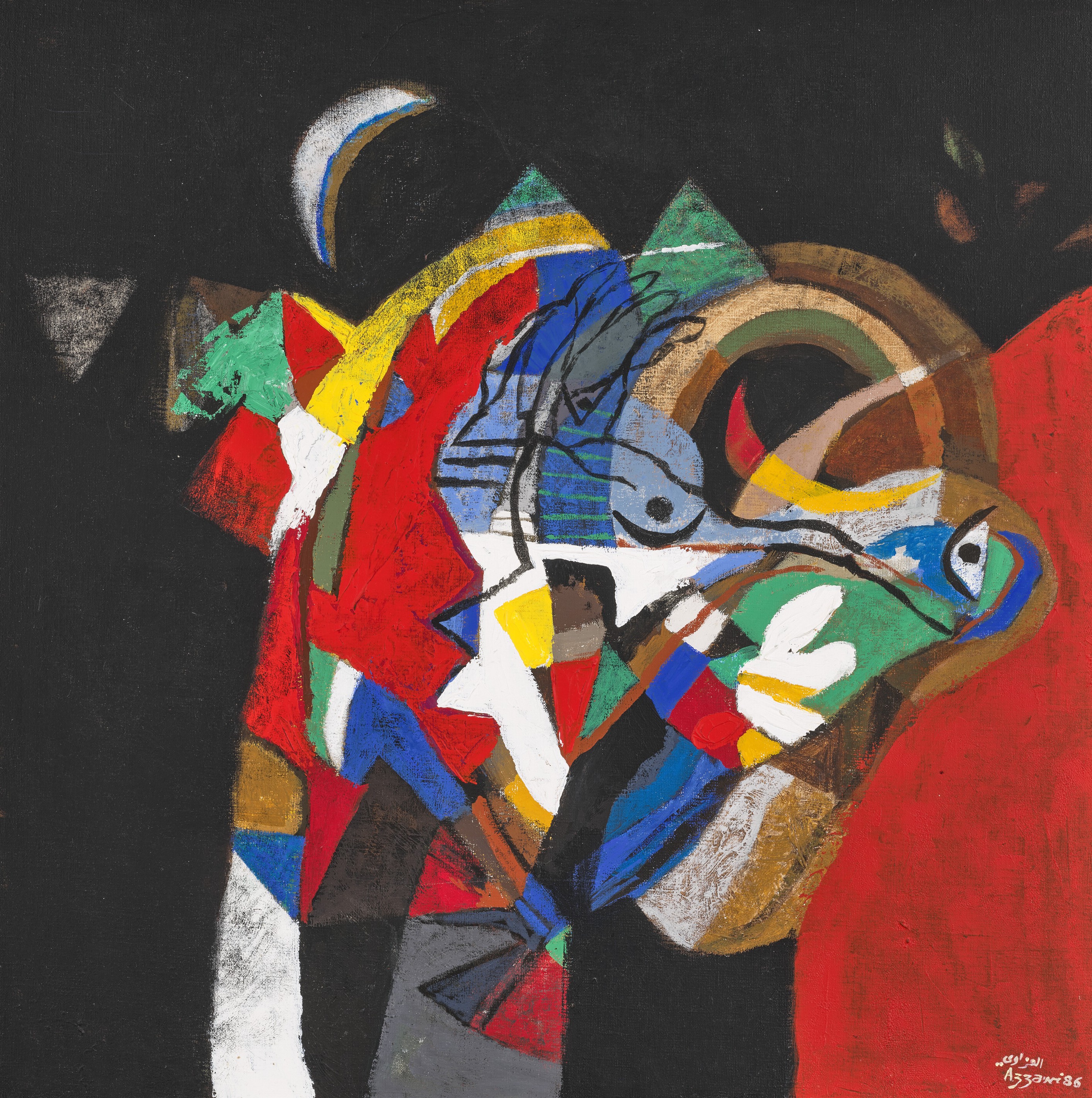 • امضاشده به عربی، امضاشده و تاریخ‌خورده «Azzawi 86» (پایین راست)