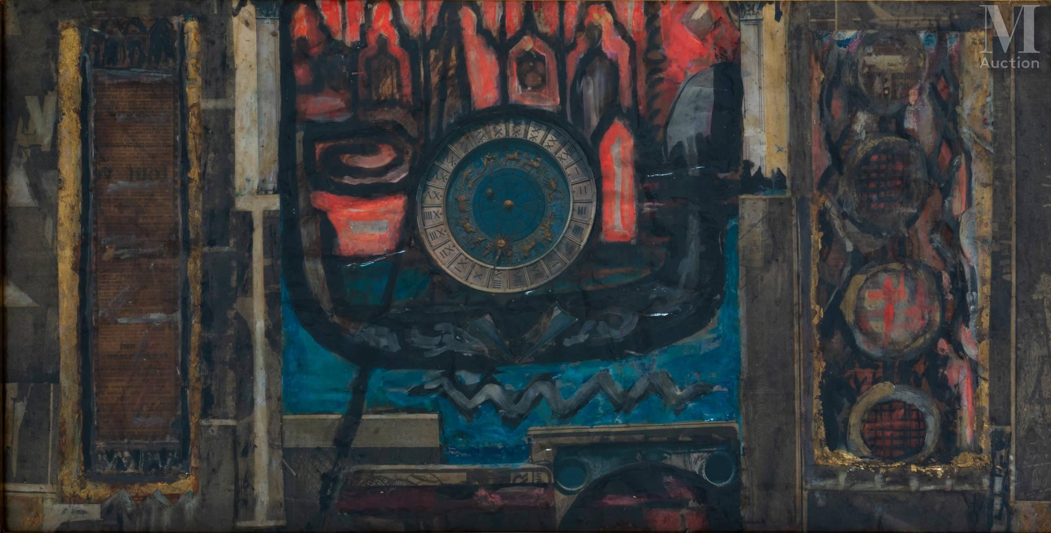 کلاژ، رنگ طلایی، گواش و وارنیش روی کاغذ