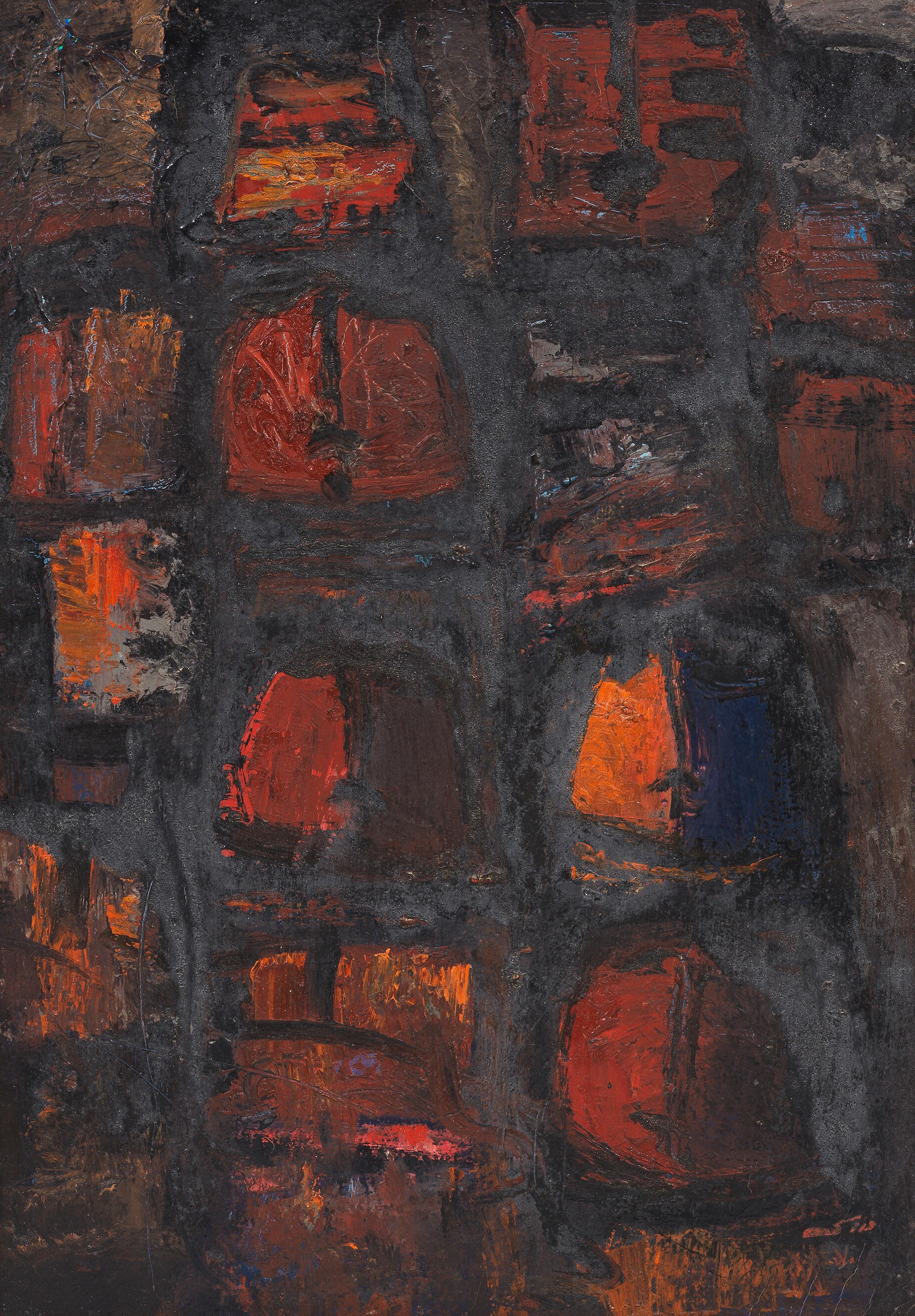 امضاشده «F.Moudarres» و تاریخخورده «۱۹۶۶» به انگلیسی و عربی (پشت اثر)