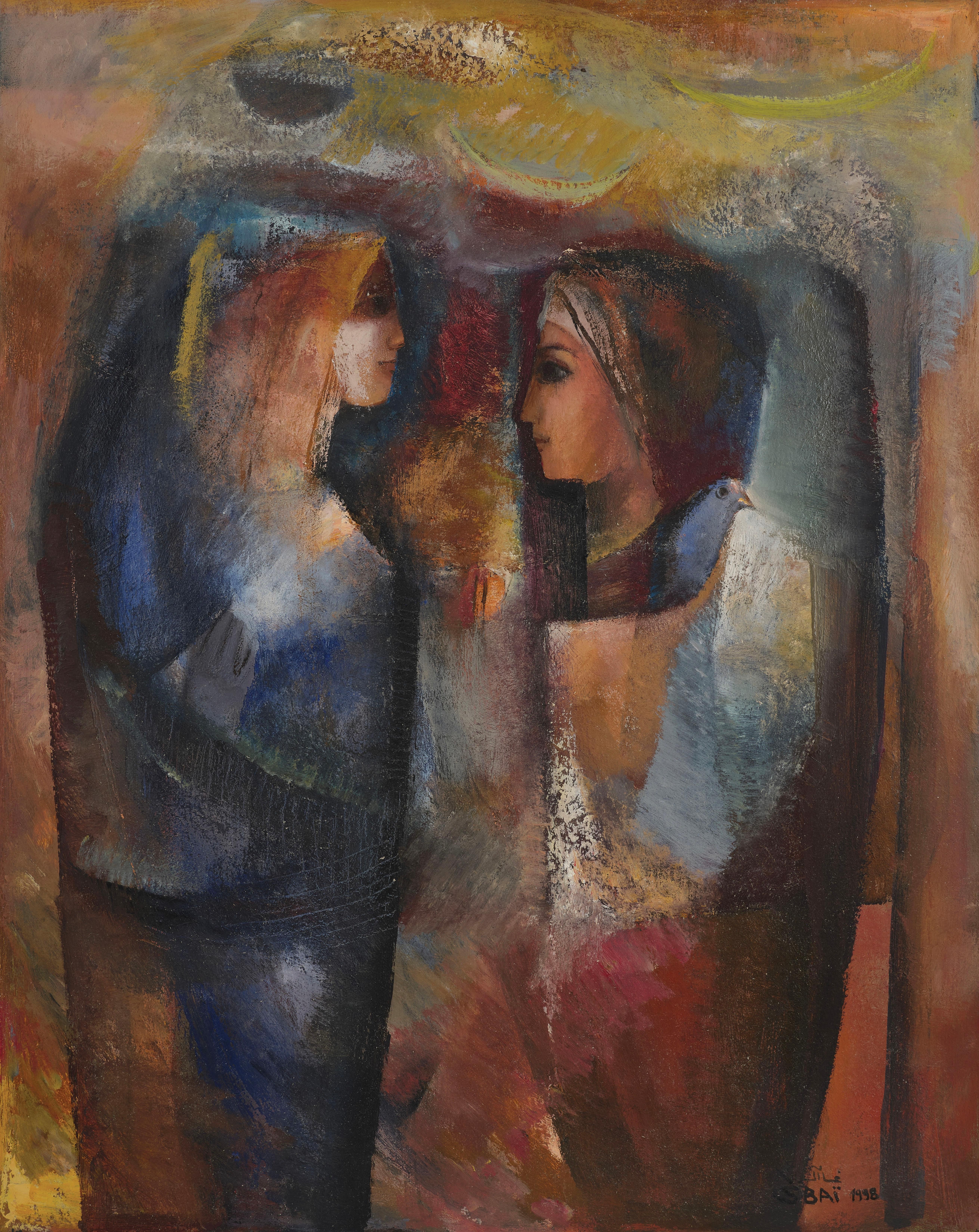 • امضاشده به عربی «Ghassan Sibai» و امضاشده و تاریخ‌خورده به لاتین «Ghassan Sibai ۱۹۹۸» (پایین راست)؛ امضاشده به عربی و لاتین (پشت اثر)