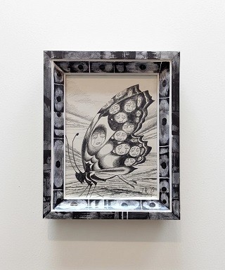 مداد رنگیِ و اکریلیک مشکی روی کاغذ روی قاب چوبیِ دستساز