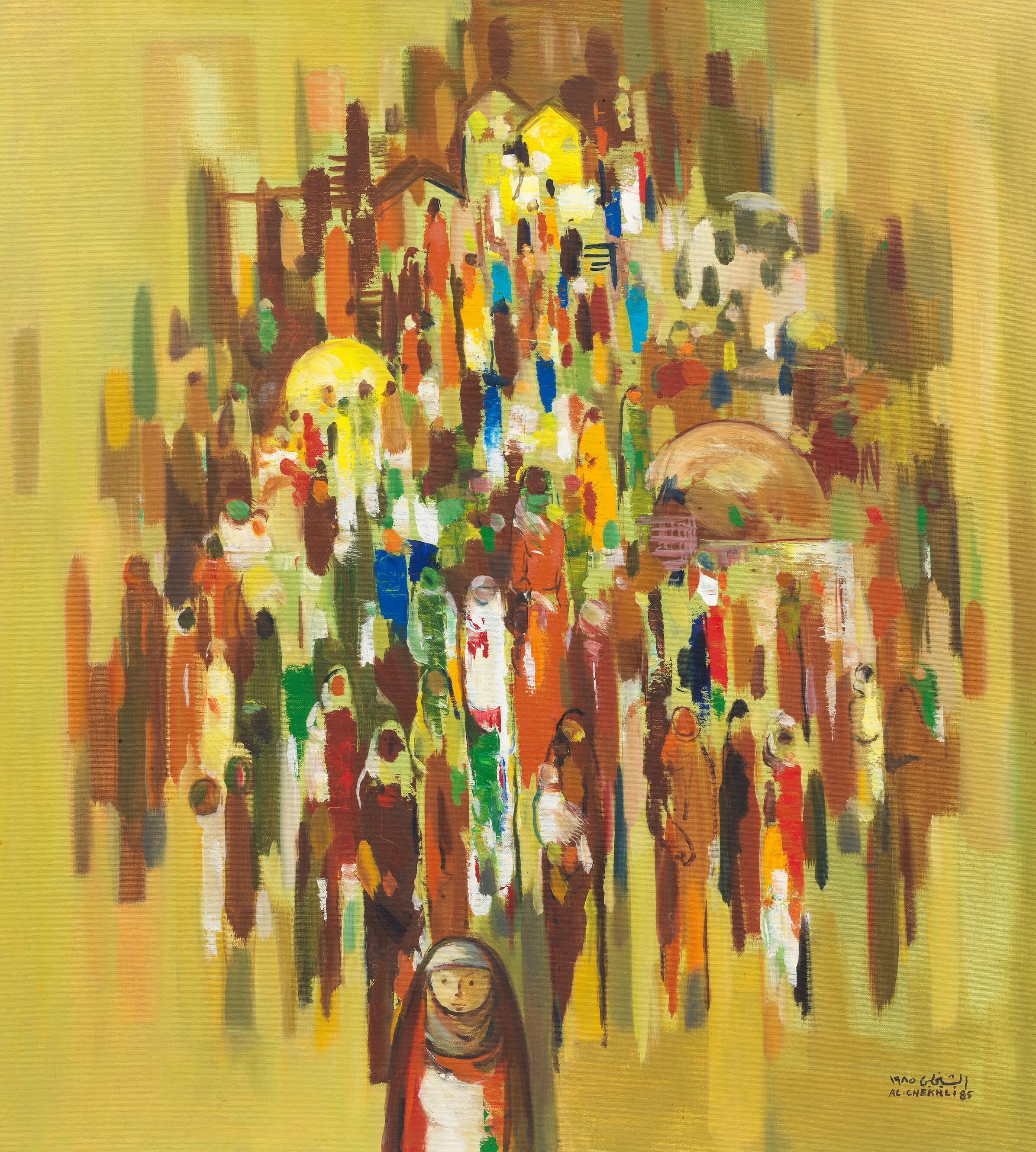 امضاشده «AL.CHEIKHLI» و تاریخخورده «85» به انگلیسی و عربی (پایین راست)