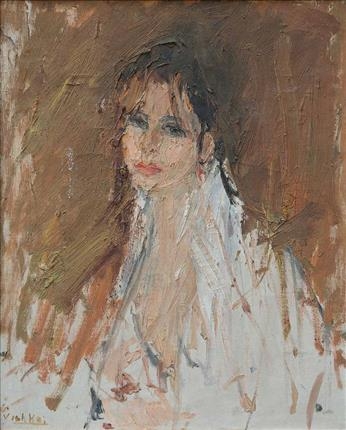 مهدی ویشکایی در این اثر فیگوراتیو تنها با ضربهقلم و با رنگهای سیال به گونهای سوژه را به تصویر کشیده که بیش از اینکه ماهیتی جسمانی داشته باشد، به خاطرهای ناپایدار از زنی اغواگر بدل شده است که تنها در چشم بر هم زدنی هویدا میشود و به همان سرعت رنگ میبازد. شناختهشدهترین آثار مهدی ویشکایی پرترههایی هستند که از شخصیتهای مهم ایرانی و خارجی خلق کرده است. او در رنگگذاری، به بیانی شخصی و قلمی منحصر به خود رسیده است. به همین جهت در اغلب پرترههایی که ساخته، نشان مشخصی از هیجان قلم دیده میشود. قلم پرشتاب او به بهترین شکل، تصویرپردازی مدرن ایرانی را در آغازگاه آن نشان میدهد و همچنین رنگهای غلیظ و ضربهقلمهای سریع، اغوا کننده و پراکنده او، نوعی کشش نیرومند تصویری را به بیننده منتقل میکند. همان طور که در این اثر نیز به خوبی دیده میشود، در آثار ویشکایی کمتر شاهد پرداخت جزئیات و چینش منظم رنگها هستیم. در واقع آمیختگی این ویژگیها، هارمونی شگفتانگیز سطحهای رنگی در ترکیببندیهای آشنای او را میسازد. به طور کلی ویشکایی را باید از نخستین هنرمندان نوگرای ایران بدانیم که ویژگیهای اغراقآمیز رنگ را در آستانه مدرنیسم ایرانی، در برخوردی بسیار جسور و آوانگارد به کار میگیرد.