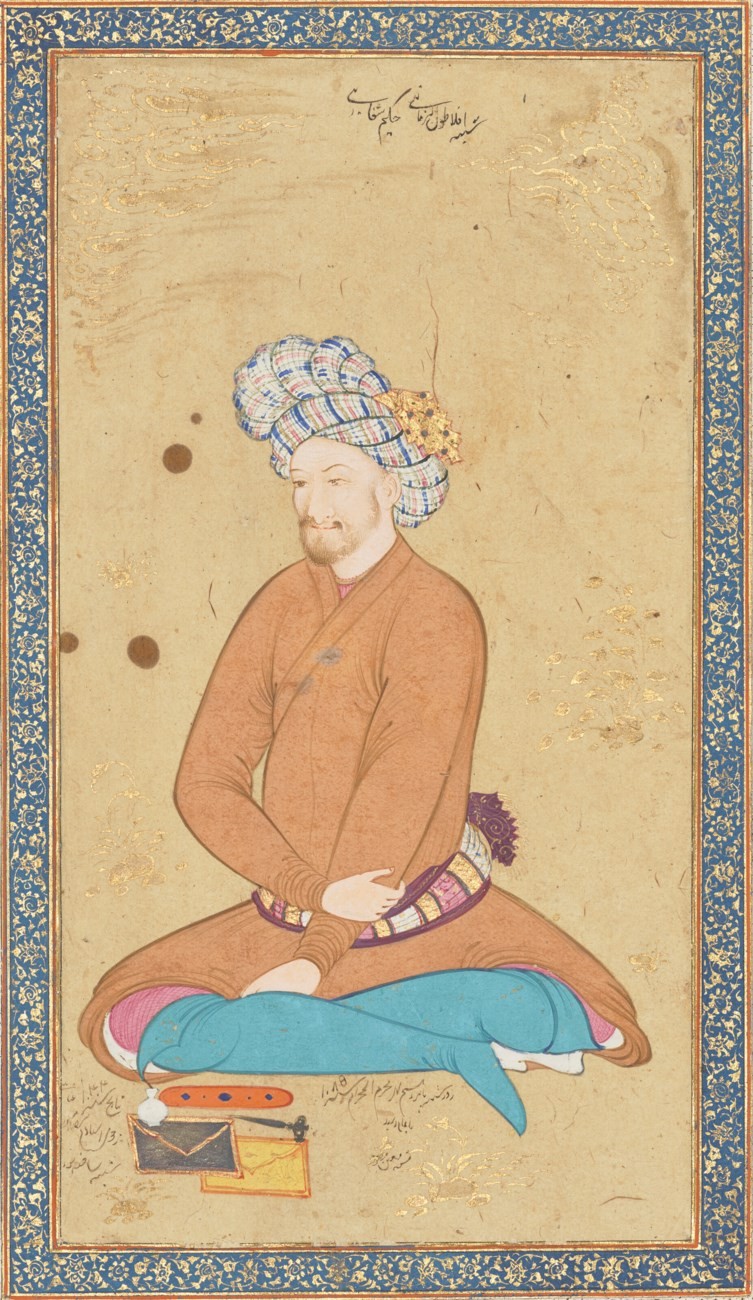 رنگدانههای مات و طلا روی کاغذ امضاشده (پایین چپ و پایین وسط) پیشینه: کواریچ و شرکا، لندن، کاتالوگ فروش شماره ۵۱۲، ۱۹۳۵ هاگوپ کِوُرکیان، نیویورک، قبل از ۱۹۶۲ ساتبیز لندن، نسخههای خطی و مینیاتورهای مهم شرقی، دارایی صندوق کِوُرکیان، ۷ آوریل ۱۹۷۵، اثر شماره ۵۳