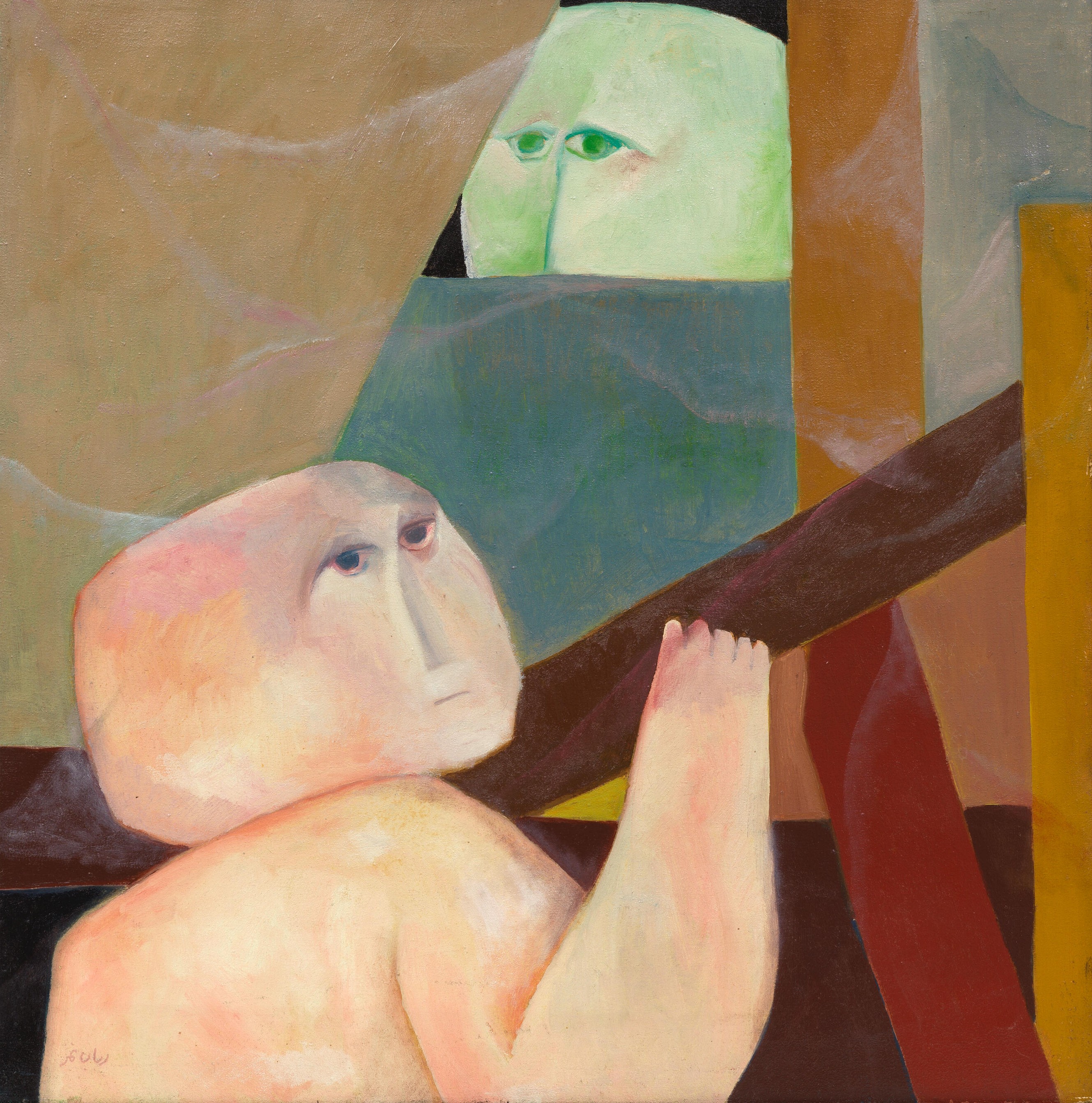 امضاشده «Rebab Nemr» به عربی (پایین چپ)، امضاشده، تاریخخورده و عنوانخورده «The Human no. 3, 1982» به عربی (پشت اثر)