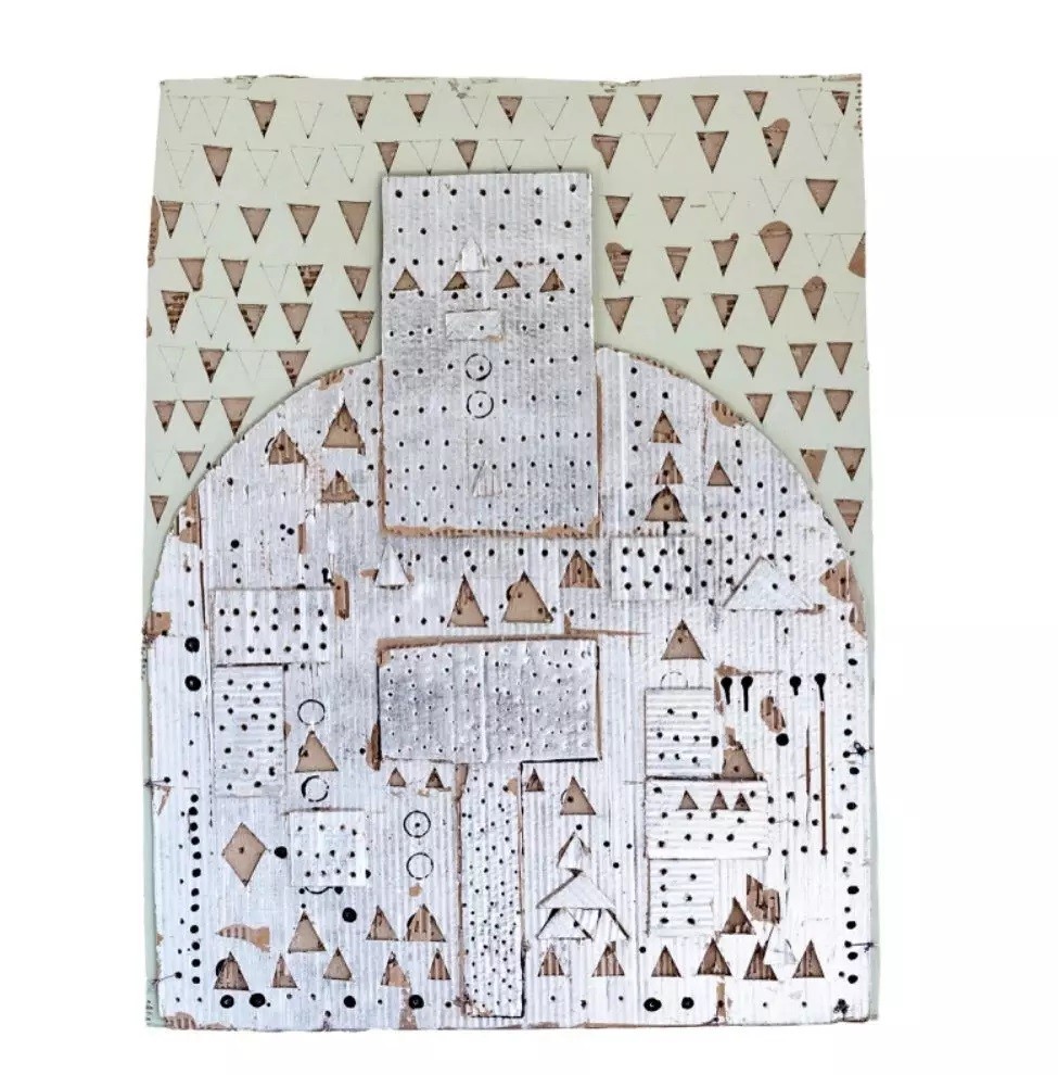 اکریلیک، ورقه نقره، سیم و جوهر روی مقوا