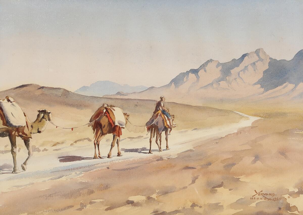 • امضاشده و تاریخ‌خورده «Yervand, Isfahan ۱۹۶۵» (پایین راست)