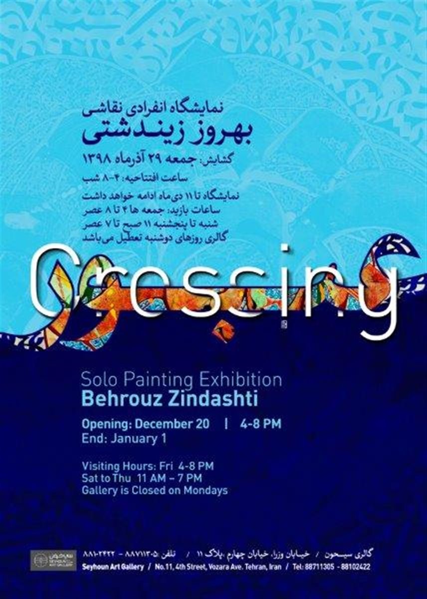 نمایشگاه نقاشی های بهروز زیندشتی با عنوان " عبور" روز جمعه ۲۹ آذر ماه ساعت ۱۶ الی ۲۰ در گالری سیحون افتتاح خواهد شد.