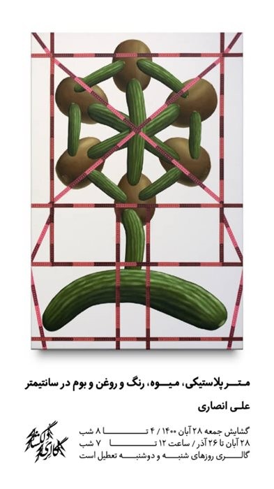 این جملات حاوی اغراق است. کاربردش این است که نشان دهد نقاش در پی چه چیزی بودهاست. انصاری قبل از نقاشی، فضا را به زوایای هندسی تقسیم میکند. برای هر قسمت میوه و یا میوههایی را انتخاب میکند. با رنگ روغن، طبیعت بیجانی را در زمینههایی که بیشتر اوقات سفید است رسم میکند. میوههای او نه در خلا و نه شناور و نه در هوا قرار دارند. میوههای او سطحی هستند که در مقابل سطح رسم شدهاند و قلمرو جدیدی بدست آوردهاند. برای بیان سادهتر کافی است که دور یکی از میوهها را از بوم برش دهیم و در دست به مخاطب نشان دهیم. در آخر بعد از کشیدن میوهها در زوایای انتخاب شده و دقیق انصاری دوباره آن تقسیم بندی را از سر میگیرد. این بار با متر، مترهای پلاستیکی و پارچهای. دوباره یک لایه از سطح به روی سطح قبلی اضافه میکند. حال ما میدانیم اندازهی بادمجان و یا سیب روی نقاشی چند سانتیمتر است. نشانهای است که به ما کمک میکند اطلاعات بیشتری در مورد سطح نقاشی به دست بیاوریم. میتوانیم اندازهی بادمجانی که تحریف شده، نقاشی شده را ببینیم و بعد به دنبال زاویه اصلی که در آن بادمجان شکل اصلی به خود میگیرد باشیم. اگر پیدایش کنیم میدانیم که فلان بادمجان از آن زاویه اگر نقاشی شود چند سانتیمتر است. حال این به چه کار میآید؟ این فقط یک سناریوی محتمل است، به این امر اشاره میکند که نقاشی این نیز میتواند باشد.
