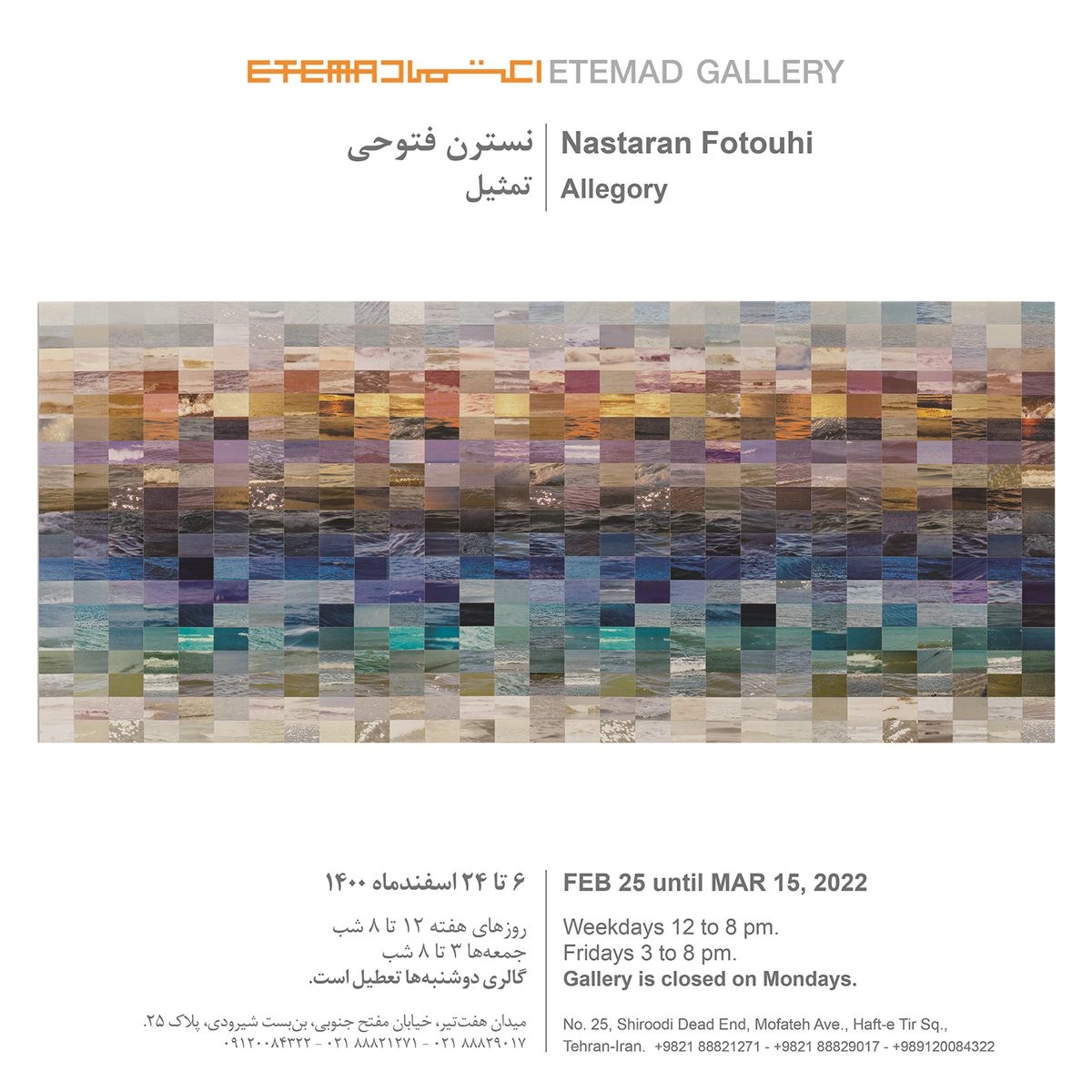 تمثيل، مجموعه ای از عکسهای آلبوم های خانوادگی «دیگران» است. تصاویری از دریا، جنگل و برف همراه با تاریخ هایی که افراد بر پشت عکس ها نوشته اند تا آن لحظه و مکان را ماندگار کنند. هر عکس، حاکی از لحظه ای شخصی و خاطرهای فردی است. یادآور و نشانگر مفهومی خاص برای هریک از آدم های حاضر در لحظه ی عکاسی است. با این وجود وقتی که عکس ها در کنار هم قرار می گیرند، یگانگی تصویر فردی در زمینه ی مشترکات و مشابهت ها از بین می رود. این مشابهت در ثبت لحظه ها را می توان محصول یک خودآگاه جمعی یا به عبارت دقیق تر، یک ناخودآگاه جمعی دانست. جایی بیرون از آگاهی تک تک افراد، در بستر این مشترکات، لحظات شخصی بازنمایی می شوند. عکس، برای من نه تنها ثبت لحظه های شخصی بلکه شاهدی بر چیزی بسیار بنیادی تر در همه ی ماست. هویتی مشترک که ما را به رغم تمام تفاوت هایمان شبیه به هم می سازد. تمثیل، کلاژ عکس هایی است که با لنزهای گوناگون از دریا و جنگل و برف گرفته شده و در کنار هم قرار گرفته اند تا وحدتی را شکل بخشد که موید این هویت و نگاه جمعی است. هر عکس تنها بخشی از پدیده های جنگل و دریا و برف است، اما این مجموعه عکس هاست که جوهر آن پدیده را مجسم می کنند.
