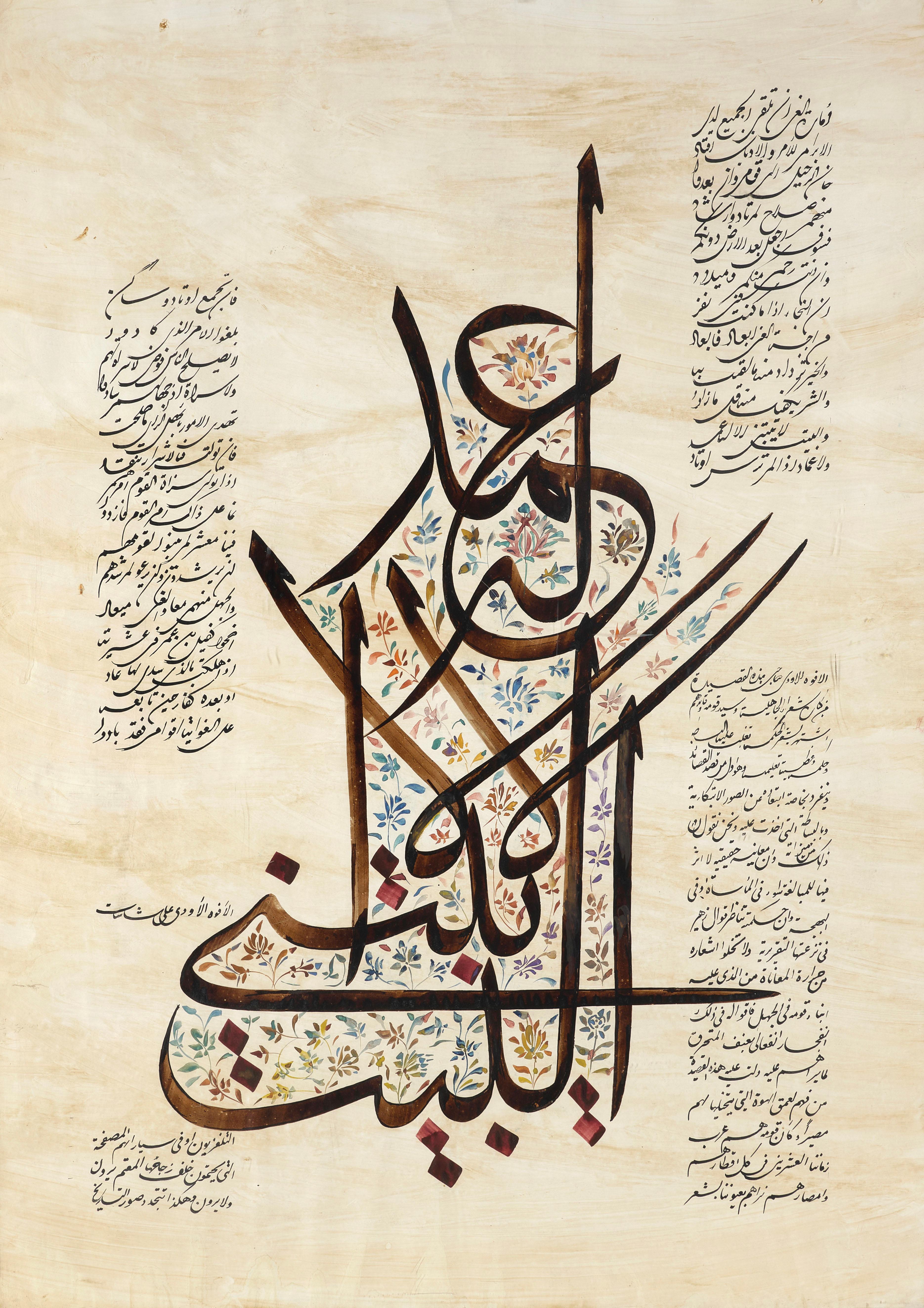 1. Nahj al-Balagha – Wisdom 289 “كان لي فيما مضى أخ في الله و كان …” Translation: “Once, I had a brother in God and he was…” Signed and dated (lower left) 100*69 cm 2. Diwan al-Afwa al-Audi – Excerpts from al-Afwa al-Audi “والبيت لا يبتنى إلا له عمد” Translation: “And a house can only be built on solid foundations” 86*60 cm 3. The Abbasid Era – Al-Hallaj “لا تسأمن مقالتي يا صاح” Translation: “Do not trust my words, O friend” 100*70 cm